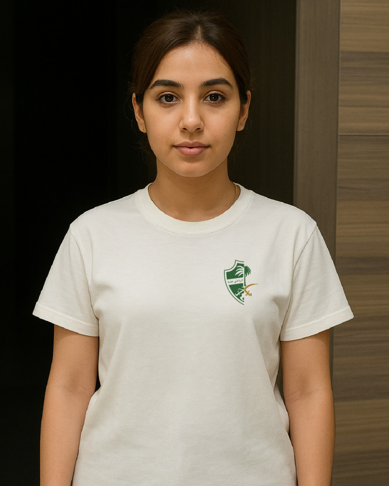 تيشيرت مميز يجمع شعار الأهلي مع شعار المملكة وعبارة يا دولتي لاصار للحب دوله 💚