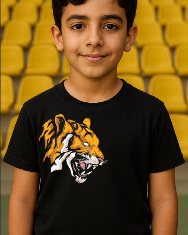 تصميم أمامي جذاب يظهر رأس نمر شرس يرمز للقوة والعزيمة، باللونين الأصفر والأسود، في توازن يعكس هوية النادي الأصيلة.